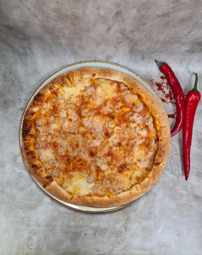 Сыр, соус томатный, масло чесночное, креветки