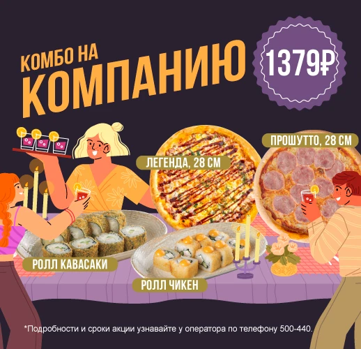 Комбо НА КОМПАНИЮ /2пиццы 28см+2ролла/