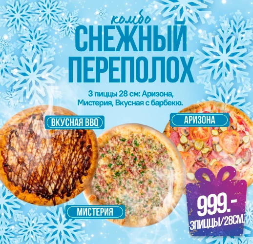 Комбо СНЕЖНЫЙ ПЕРЕПОЛОХ /3 пиццы 28см/