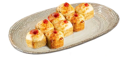 Перец болгарский, крабовые палочки, сливочный сыр, кляр, панировочные сухари, соус томатный