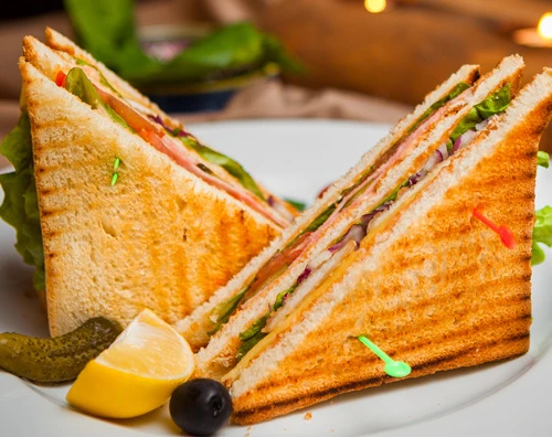 - Ветчина, томаты свежие, огурцы свежие, микс салата, сыр кремете.